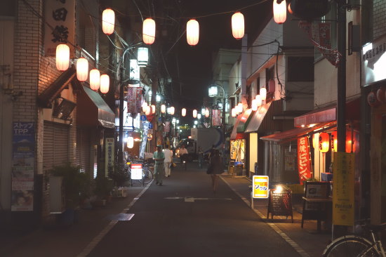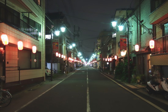 人通りが無いのに賑やかさを演出する提灯が余計に哀愁を漂よわせている。