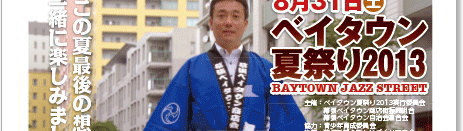 8月31日(土)、ベイタウン夏祭りの中のメインイベント。出演は、Rainbow Jam(是方博邦+石川俊介+熊谷徳明)、ベイサイド・パラダイス、きしのりこ、海江田トリオ、DRY