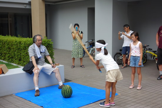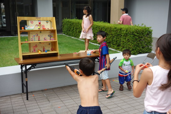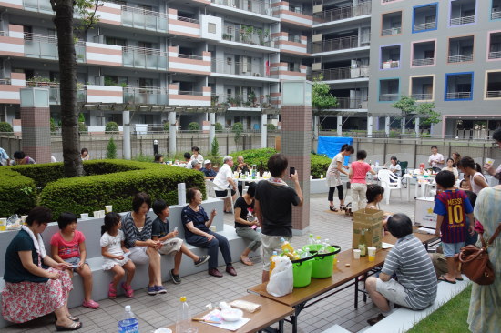 毎年この時期に、ほかの祭りとかぶらないような設定でマンションの夏祭りが開催される。こじんまりとしていながらも、最高に楽しいひと時なのだ。 |