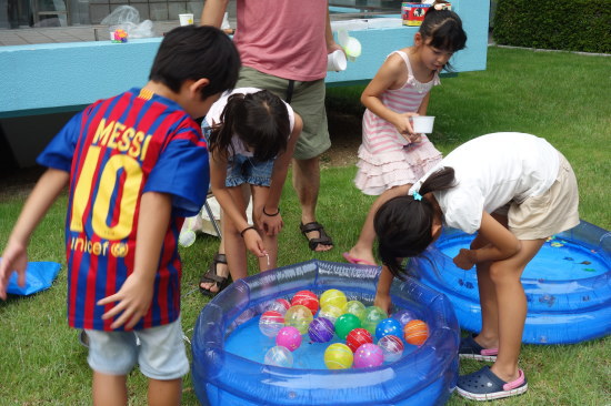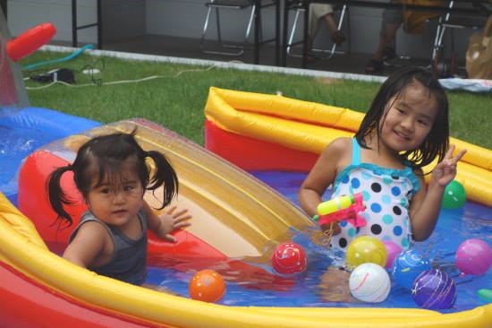 こども達の楽しめる、すいか割りや、射的、プールなどを用意する。