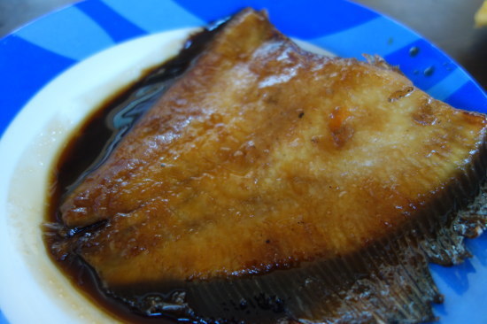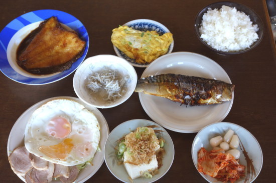 更に10分経って、つまり計40分経って、やっと料理が出てきた。そして、どんどん運ばれてきた。ざっと数えて9皿のおかずに、どんぶりめし。これは凄い。単に8品というわけじゃなくて、どれもがボリューム満点なのだ。多少予備知識があったにせよ、これは驚き。カレイの煮つけなんて、でかすぎる。(笑)
